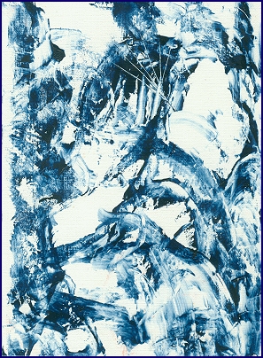 Die kraftvollen, teils pastosen Spuren der Acrylfarbe wirken wie eingefrorene Bewegungen. Linien stoßen vor, verzweigen sich, brechen ab und setzen neu an, als würde sich das Leben selbst im frostigen Morgengrauen tastend entfalten. Das Weiß der Büttenoberfläche tritt immer wieder hervor und wird zum Licht des erwachenden Tages, das durch die Strukturen hindurchleuchtet. Es ist kein statisches Weiß, sondern ein atmendes Feld, in dem sich Formen andeuten und wieder auflösen.
