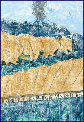 Langsam lösten sich die dunklen Linien, wurden weicher, fließender. Das Blau des Himmels vertiefte sich, als hätte es seine Stimme wiedergefunden. Und die goldenen Felder, sie leuchteten nicht mehr wie etwas Festgehaltenes, sondern wie etwas, das bereit war, weiterzugehen.