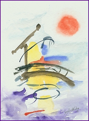 Gleichzeitig stellt das Bild Fragen: Wo beginnt Schöpfung? Wo endet sie? Ist die Brücke ein Übergang nach außen, in eine neue Welt, oder führt sie nach innen, in das Herz des Betrachters? Sie scheint zwischen den Elementen zu schweben, zwischen Wasser und Himmel, Körper und Geist. Diese Schwebe erzeugt Spannung und Frieden zugleich, das Paradox jeder wahren Transformation.