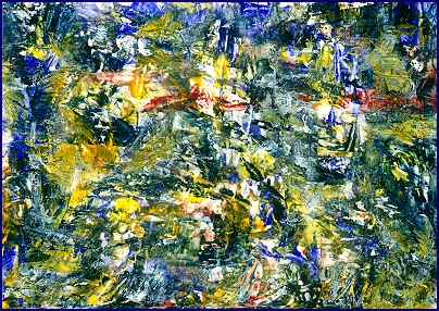Dieses Werk entfaltet sich wie ein pulsierendes Feld verdichteter Energie, ein Kraftgewebe, in dem Farbe nicht nur Fläche ist, sondern Körper, Bewegung und innere Spannung annimmt. In der Überlagerung vibrierender Gelb-, Blau- und Grünimpulse entsteht eine Bildwelt, die zugleich organisch und archaisch, unruhig und lebendig, instinktiv und hochbewusst wirkt. Nichts erscheint dekorativ, jede Spur trägt den Charakter eines Setzens, Suchens und Behauptens im offenen Farbraum.