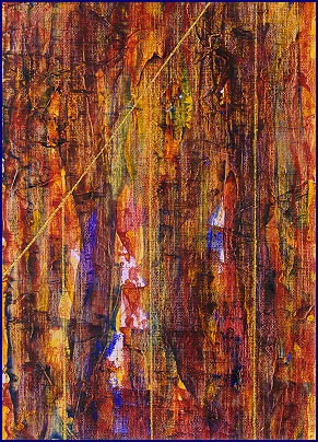 Die dominierenden warmen Farbtöne, Ocker, Rostrot, verbranntes Orange. wirken wie Sedimente der Erfahrung, Schicht um Schicht abgelagert im Laufe eines gelebten Lebens. Dazwischen blitzen kühlere Nuancen auf, fragile Lichtspuren in Blau und Violett, die wie flüchtige Erinnerungen oder verdrängte Erkenntnisse erscheinen. Diese Kontraste erzeugen eine Spannung, die den Betrachter unweigerlich in einen Zustand der inneren Suche zieht.