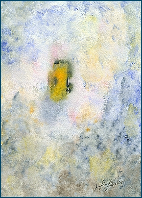 In diesem Aquarell öffnet sich dem Betrachter eine stille Schwelle zwischen dem Sichtbaren und dem Inneren, als hätte der Moment selbst beschlossen, für einen Atemzug stehen zu bleiben. Aus dem zarten Übergang von Nebel zu Licht erhebt sich eine goldene, vibrierende Energie, die wie ein geheimer Wegweiser auf etwas verweist, das nur jene entdecken, die bereit sind zu lauschen.