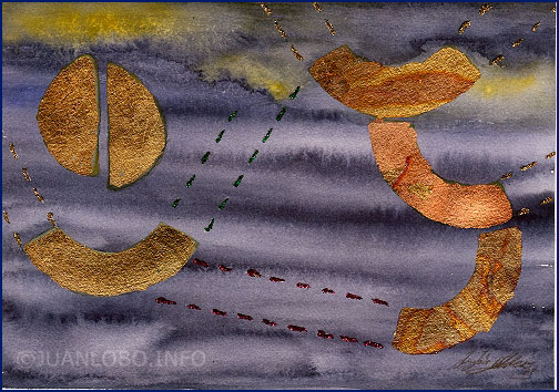Remastert Kalenderblatt 2. Februar Sonntag, 2. Februar 2025 JUANLOBO Das Kalenderblatt zum 2. Februar “What is going to be?” Aquarell, Glitter, Schlagmetall auf Aquarellbütten ca 21 x 15 cm Teile diesen Beitrag
