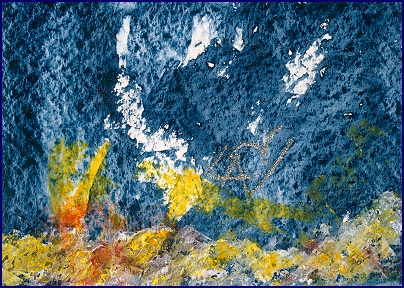 Acryl, Glitter und Acrylpaste auf Torchon ca 15 x 21 cm