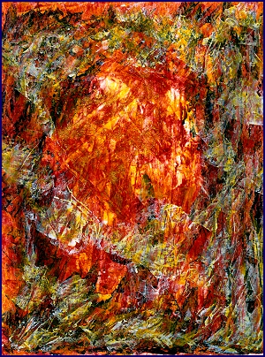 Dieses Werk entfaltet sich wie ein stiller Schöpfungsakt. Die leuchtende Mitte, ein vibrierendes Zentrum aus Rot, Gold und gebrochenem Licht, scheint zu atmen, als würde sich aus der Tiefe ein inneres Feuer Bahn brechen. Was zunächst wie Chaos wirkt, offenbart sich bei längerem Betrachten als Geburtsmoment einer neuen Ordnung, einer, die nicht aus dem Denken, sondern aus dem Fühlen hervorgeht.