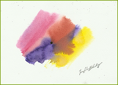 In diesem Aquarell entfaltet sich ein stiller, doch eindringlicher Moment innerer Bewegung: Ein Lichtpunkt, kaum mehr als ein kleiner Stern, ruht im Zentrum eines vibrierenden Farbstroms, als würde er das pulsierende Geschehen um sich herum mit stiller Gewissheit ordnen.