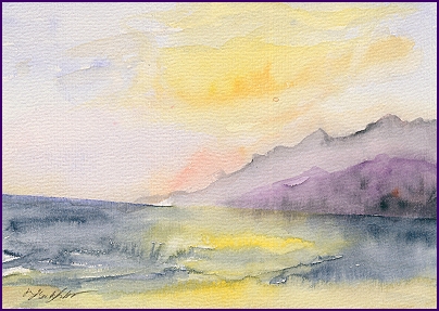 “As the sun rose behind the violet mountains, it spread its first golden light across the still waters”