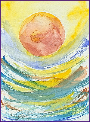Und doch bleibt das Bild offen, voller Fragen. Welche Sonne geht in mir auf? Welchen Kreis meines Lebens beginne ich gerade zu schließen oder neu zu öffnen? Was erhebt sich in mir, wenn ich bereit bin, es zuzulassen? Diese Fragen sind es, die den Betrachter nicht loslassen und aus einem schönen Aquarell ein kraftvolles Sammlerstück machen.