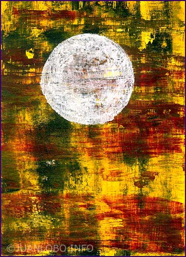 Morgenbild Morgenbild 14. April 2011 Donnerstag, 14. April 2011 JUANLOBO Morgenbild vom 14. April “Nenn es Sonne, nenn es Mond, nenn es …” “Call it sun, call it moon, call it …” “Llama lo sol, llama lo luna, llama lo …” Quarzsand, Acryl, Acrylpaste auf Aquarellbütten ca. 21 x 15 cm Teile diesen Beitrag