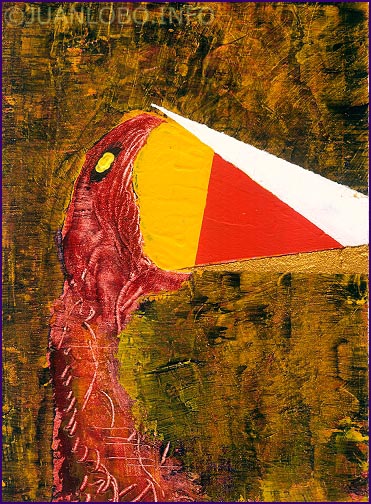 Morgenbild Morgenbild 18. März 2011 Freitag, 18. März 2011 JUANLOBO Morgenbild vom 18. März “Was Schlangen so alles essen?” “What snakes eat all?” “Qué todo comen serpientes?” Acryl, Acrylpaste auf Aquarellbütten ca. 21 x 15 cm Teile diesen Beitrag