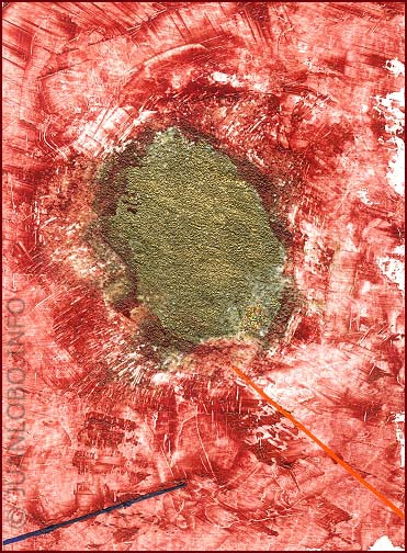 Acryl, Acrylpaste, Glitter, Quarzsand auf Aquarellbütten ca. 21 x 15 cm