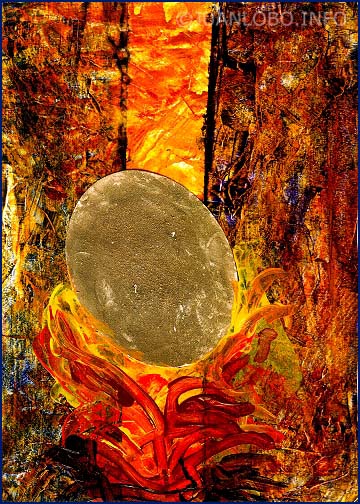 Acryl, Pigment, Asche von Räucherwerk, Glitter, Acrylpaste, Karton auf Aquarellpapier ca. 21 x 15 cm