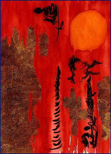 Acryl, Acrylpaste, Glitter, Asche von Räucherwerk, Bleistift auf Aquarellpapier ca. 21 x 15 cm
