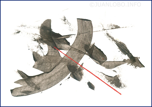Die rote Fläche bricht als energetischer Kontrapunkt hervor, sie ist das pulsierende Zentrum des Bildes, das emotionale Herz. Hier scheint das Leben selbst zu lodern: Leidenschaft, Wut, Lebenskraft und Verletzlichkeit verdichten sich zu einem vibrierenden Raum, der alles um ihn herum in Bewegung setzt. Gegen dieses Rot stemmen sich die schwarzen Linien, als wollten sie Einhalt gebieten, Strukturen schaffen, Kontrolle zurückgewinnen. Doch die Grenzen bleiben durchlässig. Das Rot sickert hindurch, fordert sein Recht auf Präsenz.