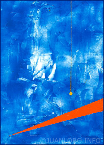Ein Gemälde, das nur erlebt werden will. Auf den ersten Blick scheint es schlicht: ein tiefes, vibrierendes Blau, das wie der unendliche Himmel nach einem Sommerregen wirkt. Doch plötzlich zieht ein einziger goldener Faden die Aufmerksamkeit an – fein, fast unscheinbar – und doch ist er es, der alles verändert.