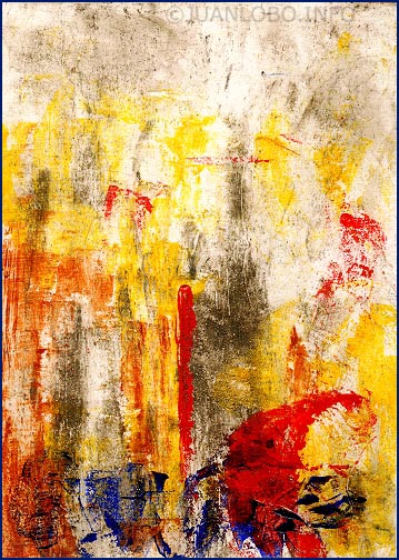 Das Bild ist ein vibrierendes Bekenntnis zur Verbindung von Ritual, Farbe und Transzendenz. In diesem Werk wird der schöpferische Akt selbst zum heiligen Vorgang. Feuer, Rauch und Gebet scheinen sich in die Textur des Papiers eingeschrieben zu haben, Spuren einer unsichtbaren Zeremonie. Die leuchtenden Gelb- und Rottöne tanzen wie Opferflammen im Tempellicht, während graue und aschige Partien das Vergängliche, das Verbrannte und das Transformierte verkörpern. Zwischen Erdung und Ekstase, Materie und Geist entsteht eine visuelle Choreografie, die an uralte Putschas erinnert, jene rituellen Handlungen, in denen der Mensch das Sichtbare dem Unsichtbaren weiht.