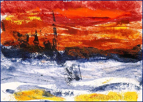 Dieses Bild ist ein emotionales Brennglas: eine Verdichtung von Abendlicht, Bewegung und innerer Wahrnehmung. Die kräftigen Rot- und Orangetöne, die über der Szene glühen, wirken wie ein Himmel, der noch einmal alles sagt, bevor die Nacht das Wort übernimmt, leidenschaftlich, kraftvoll, fast eruptiv. Es ist kein stiller Sonnenuntergang, sondern ein Moment der Transformation, in dem die Intensität des Tages sich weigert, einfach zu verblassen.