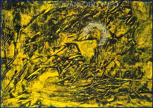 Acryl, Acrylpaste, Ölpastell, Glitter auf Aquarellpapier ca. 15 x 21 cm