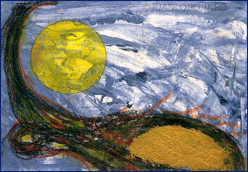 Acryl, Acrylpaste, Ölpastell, Asche von Räucherwerk auf Aquarellpapier ca. 15 x 21 cm