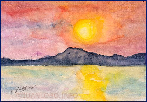 “Salida del sol al lago: El azul da la bienvenida al amarillo y deja nacer el rojo en el vivo”